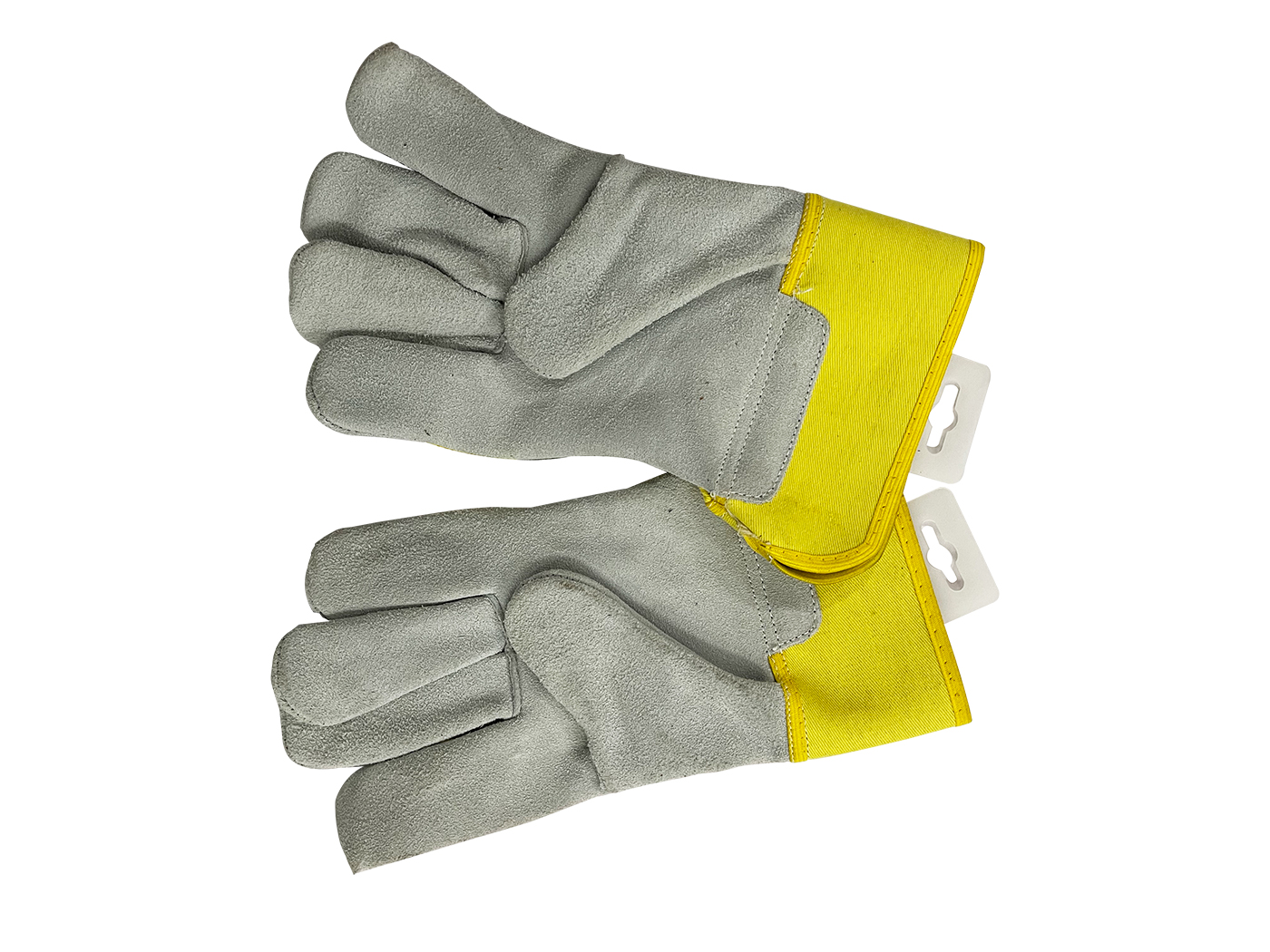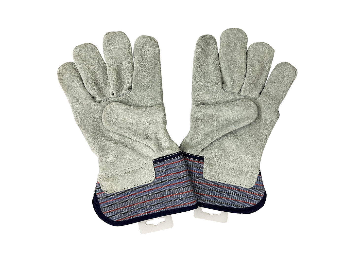 Leather Palm Work Gloves With Cotton Blended Green Striped Back and Rubberized safety Cuff, Ideal for Construction Work, Gardening Work, Animal handling.